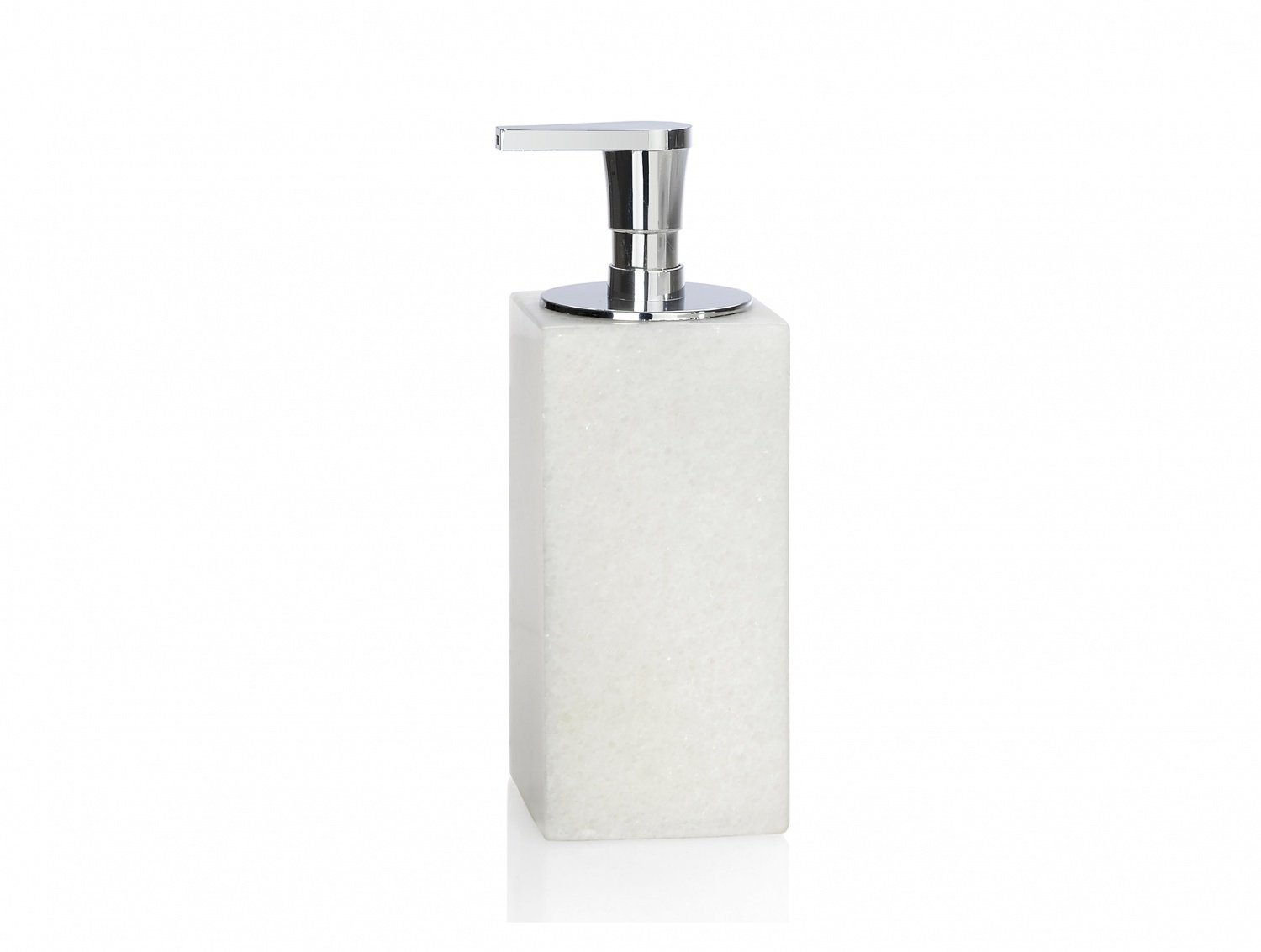 Диспенсер для жидкого мыла в форме параллелепипеда из белого мрамора, дозатор из хромированного металла.