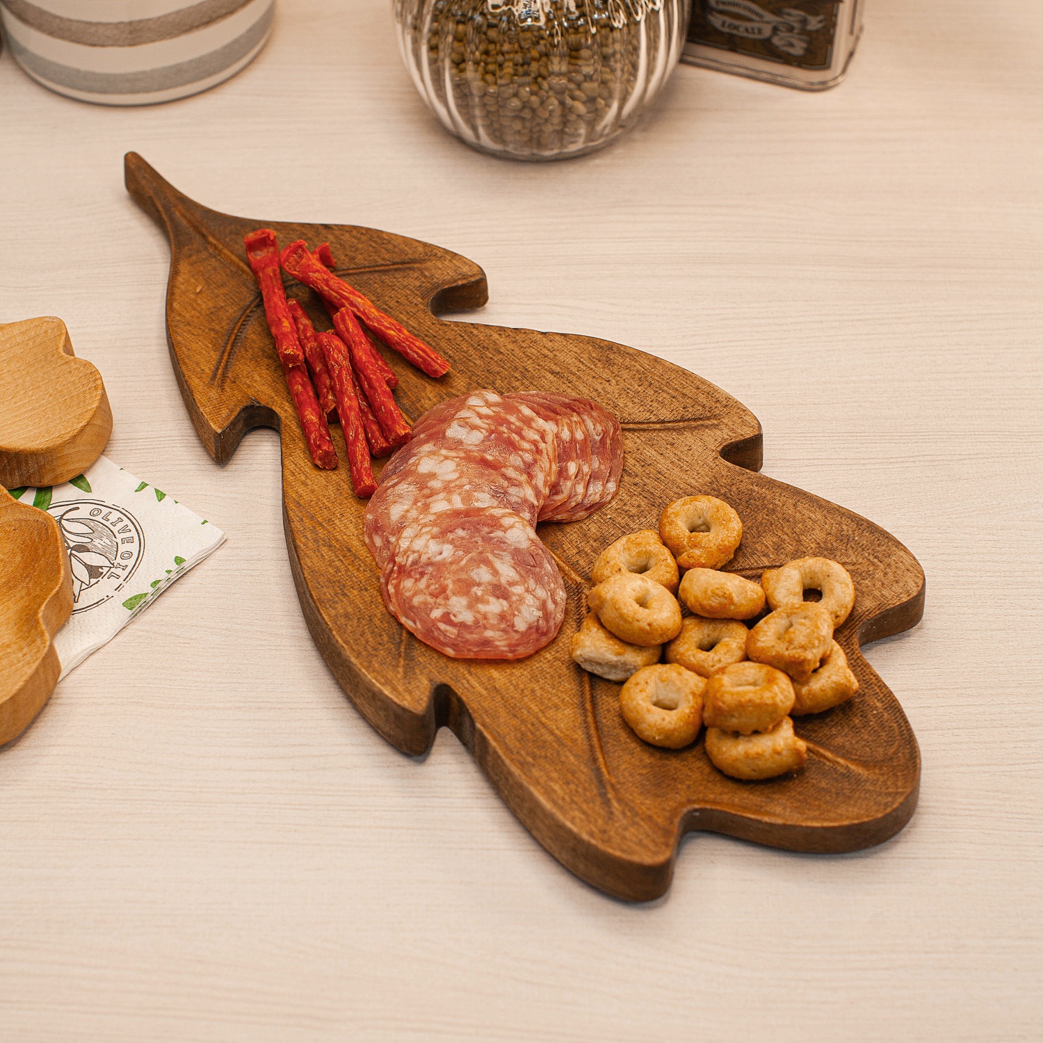 Деревянное блюдо для сервировки в форме фактурных листев - практичное и необычное решение для придания изысканности и уюта на Вашей кухне! Можно найти разное применение блюда: в качестве декора, разделочной доски, тарелки для сервировки. Наше сервировочное блюдо применяют для подачи сыра, фруктов, сладостей. Его также можно использовать как плато для суши, мяса или рыбы. Высокое качество натурального дерева позволяет перевернуть сервировочную доску и использовать ее в качестве разделочной. Деревянное блюдо для подачи выполнено из натурального Ясеня, древесина которого имеет уникальную текстуру и цвет, ценится за износостойкость и прочность, а также обладает эффектным внешним видом.