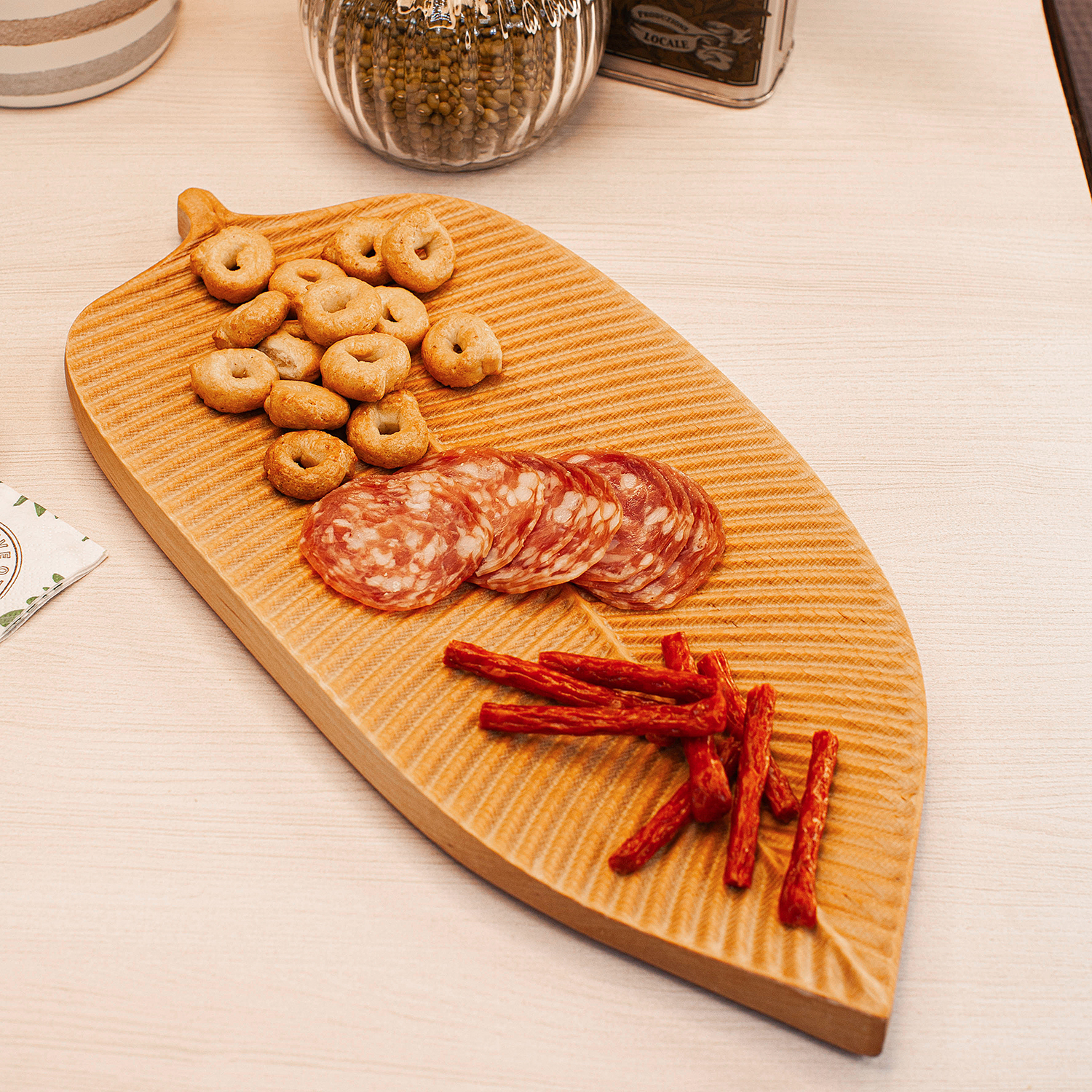 Деревянное блюдо для сервировки в форме фактурных листев - практичное и необычное решение для придания изысканности и уюта на Вашей кухне! Можно найти разное применение блюда: в качестве декора, разделочной доски, тарелки для сервировки. Наше сервировочное блюдо применяют для подачи сыра, фруктов, сладостей. Его также можно использовать как плато для суши, мяса или рыбы. Высокое качество натурального дерева позволяет перевернуть сервировочную доску и использовать ее в качестве разделочной. Деревянное блюдо для подачи выполнено из натурального Ясеня, древесина которого имеет уникальную текстуру и цвет, ценится за износостойкость и прочность, а также обладает эффектным внешним видом.
