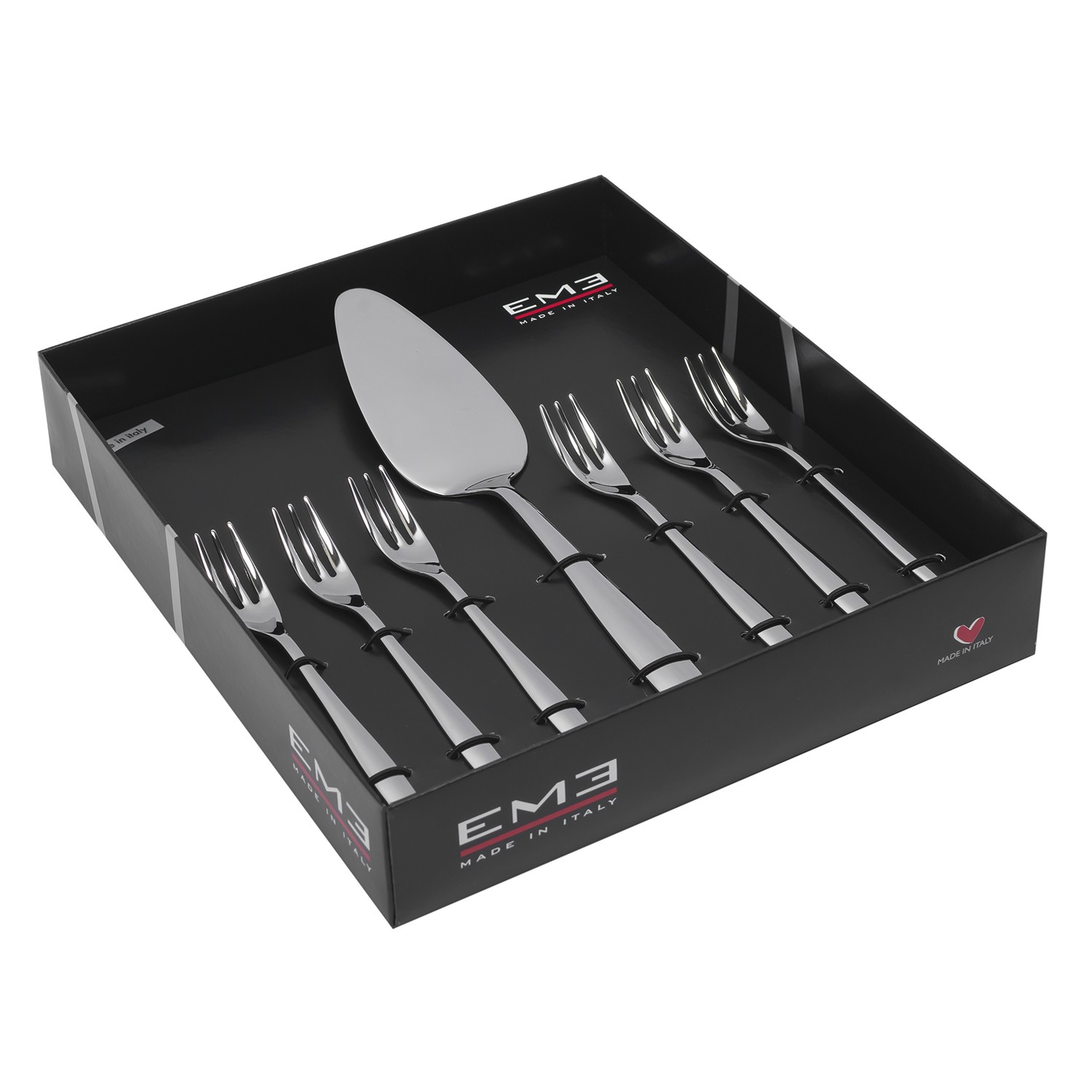 Набор для торта EME Eleven включает в себя шесть десертных вилок и лопатку для сервировки. Приборы изготовлены из полированной нержавеющей стали 18/10.