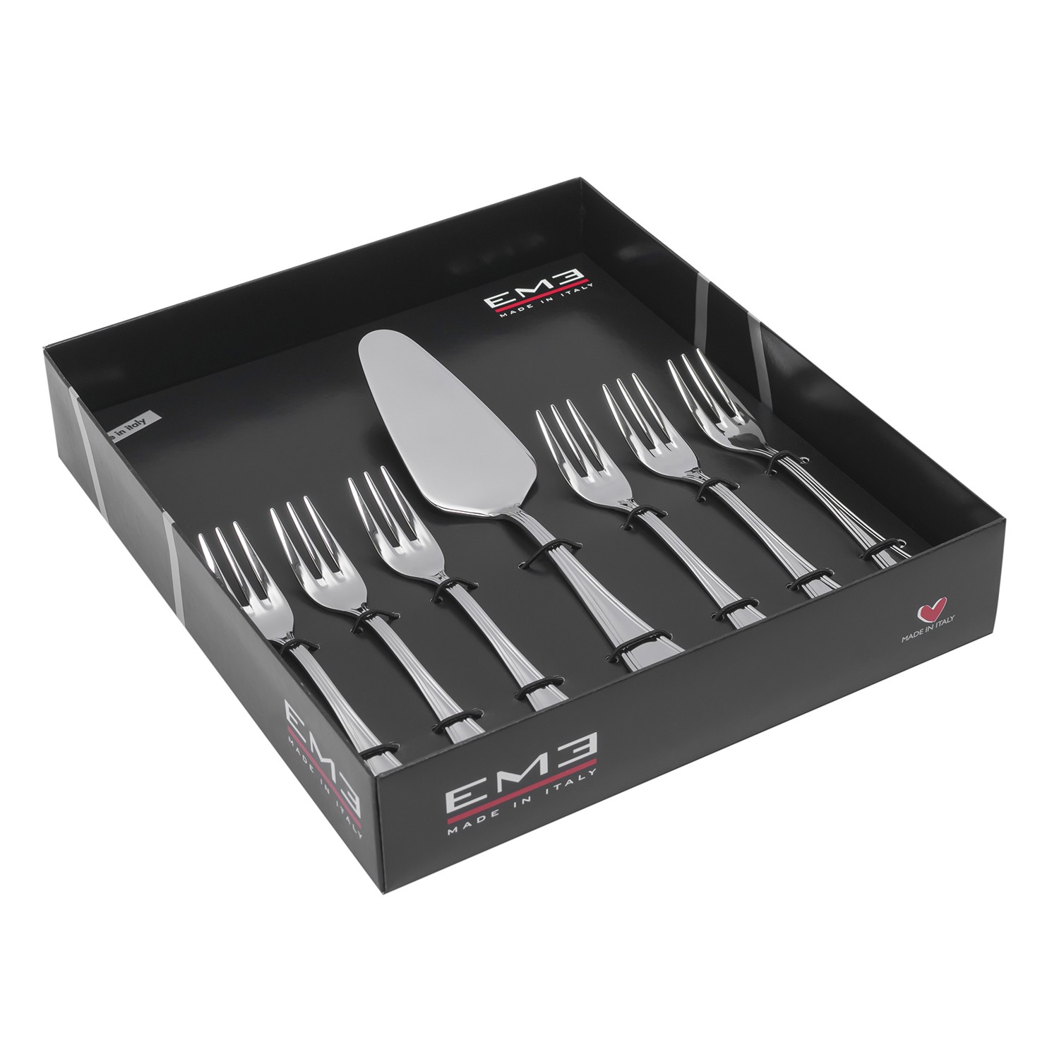 Набор для торта EME Impero включает в себя шесть десертных вилок и лопатку для сервировки. Приборы изготовлены из полированной нержавеющей стали 18/10.