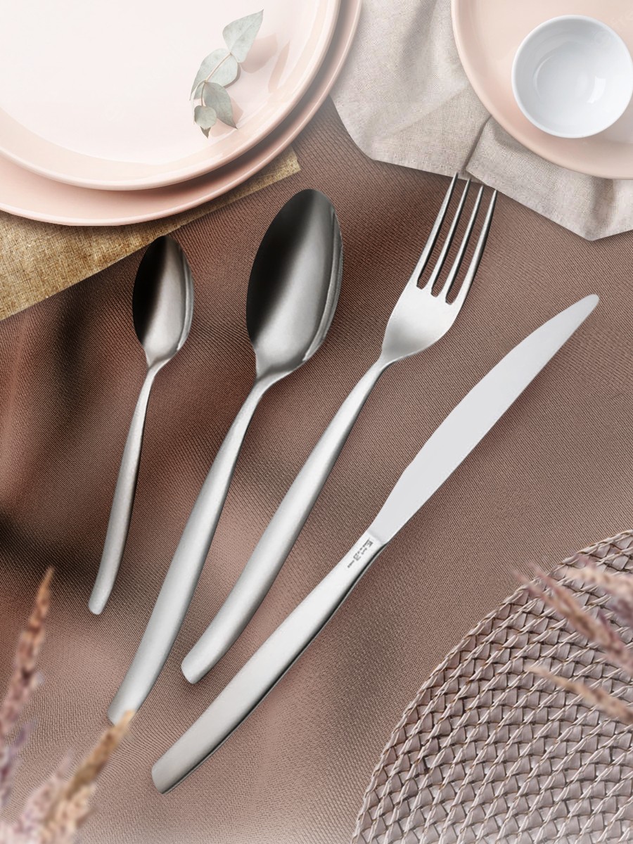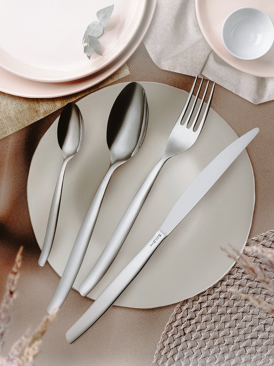 Shark — это коллекция столовых приборов с асимметричным дизайном ручек. Столовые приборы, гармонично сочетающие в себе плавный дизайн и эргономичные изгибы, станут идеальным выбором для повседневного использования.