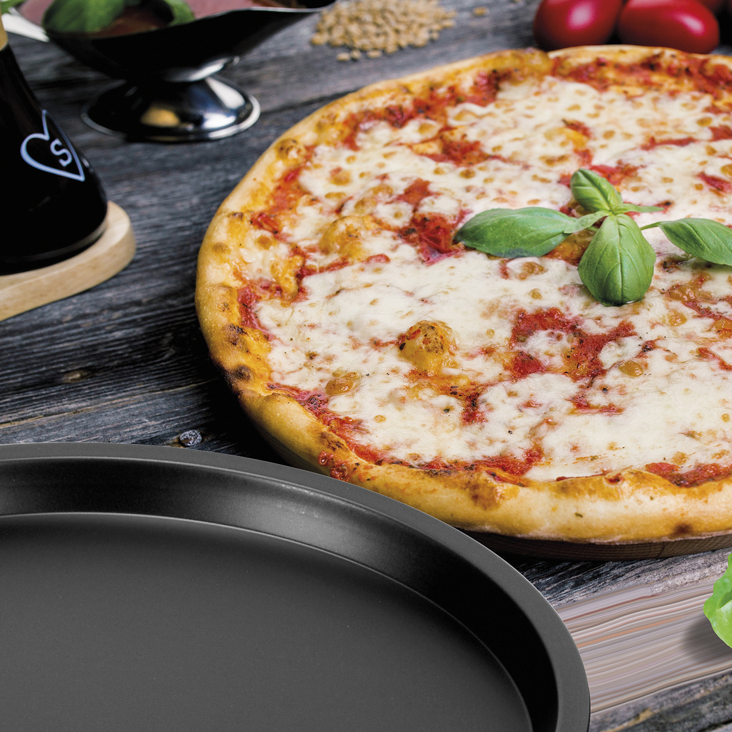 Пицца, моя любовь! Для самого известного итальянского блюда в мире компания Guardini создала специальную лёгкую, сверхэффективную форму с поистине превосходными характеристиками: форму для пиццы из серии Gardenia! Также идеально подходит для приготовления фокаччи. Эта форма из стали Hi-Top с двухслойным антипригарным покрытием гарантирует идеальное приготовление и антипригарные свойства. Кроме того, отличная теплопроводность стали обеспечивает быстрое и равномерное приготовление в духовке. Чтобы наслаждаться каждым десертом и дать волю своему творческому потенциалу. Каждая форма не содержит бисфенол А, перфтороктановую кислоту и тяжёлые металлы.