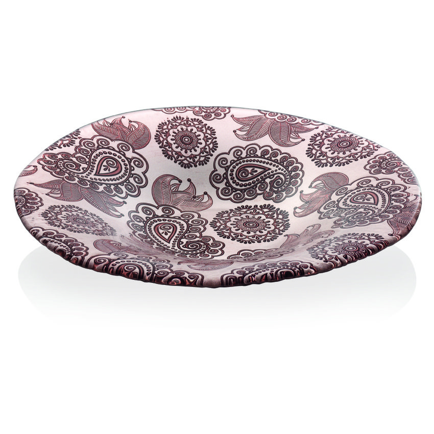 Блюдо глубокое черепахового цвета с внутренним узором бута. Боросиликатное стекло ручной работы.