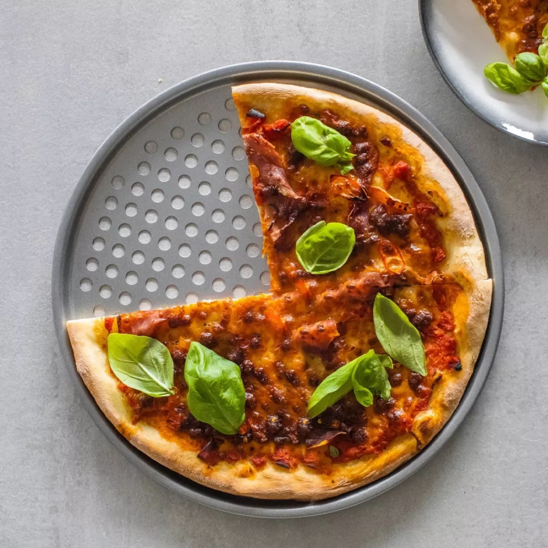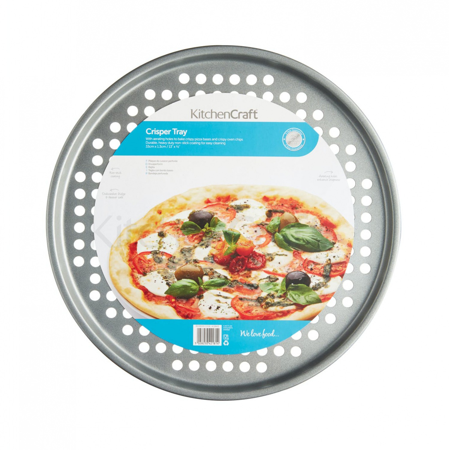 Лоток идеально подходит для выпечки пиццы с хрустящей корочкой и чипсов в духовке. Он оснащен вентиляционными отверстиями для хрустящей корочки пищи во время приготовления и имеет прочное серебряное антипригарное покрытие для легкой очистки.