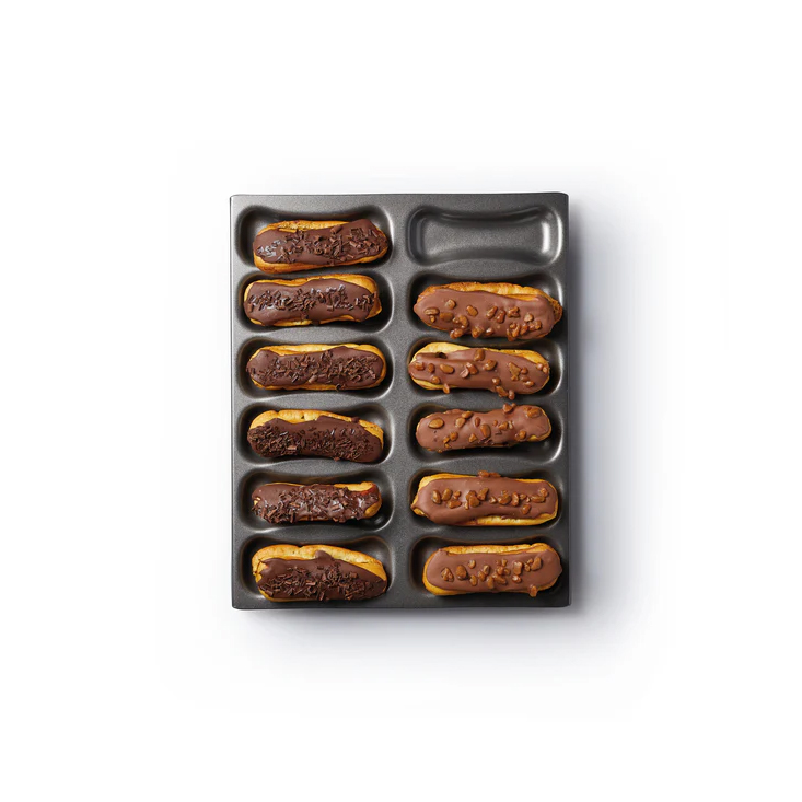 Форма для выпечки на 12 эклеров. Антипригарное покрытие. Размер формы: 31х25,5 см, размер отверстий: 11х4 см. Предметы из серии Master Class предназначены для максимально быстрой и эффективной работы на кухне.