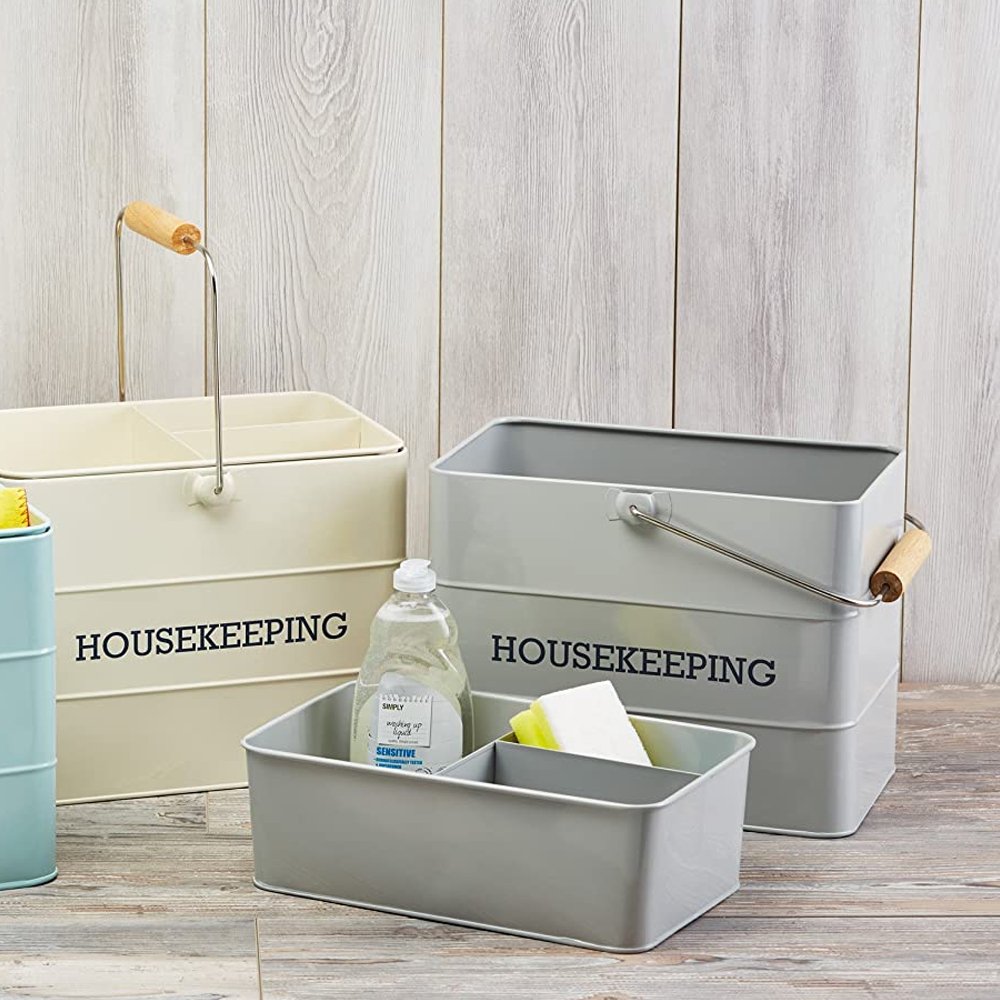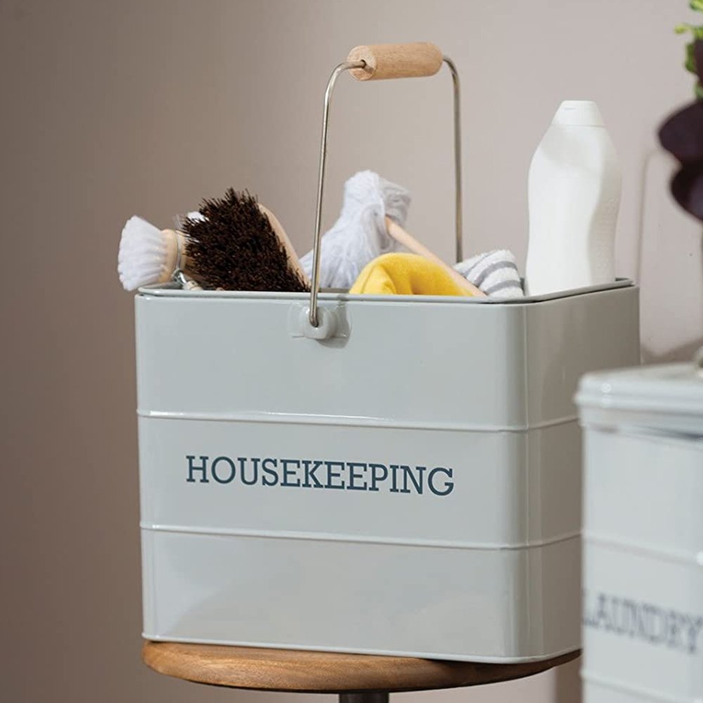 Набор для уборки Living Nostalgia от Kitchen Craft состоит из ведра для уборки и трехсекционной вставки в ведро для хранения и перемещения аксессуаров (салфеток, губок, моющих средств и др.) во время уборки. И ведро и вставка изготовлены из эмалированной стали. Набор помогает сократить время уборки, позволяет меньше уставать и красиво хранит средства и аксессуары между уборками.