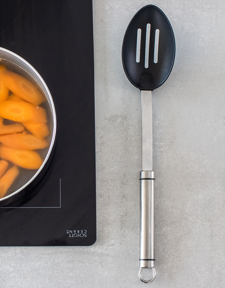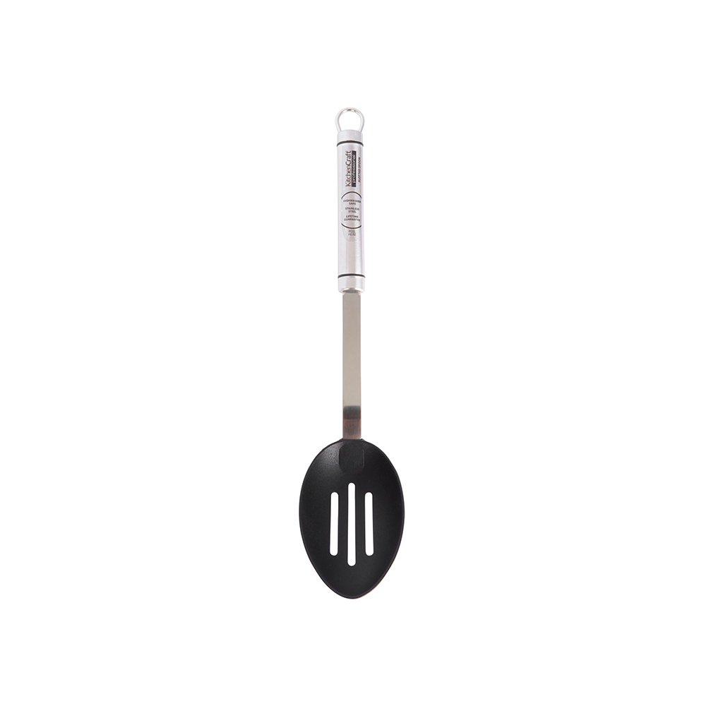 Шумовка KitchenCraft Professional незаменима на любой кухне. Она поможет Вам в приготовлении множества блюд от овощей до соусов. Термостойкий нейлон не царапает поверхность посуды, а прочная ручка из нержавеющей стали делает эту шумовку удобным инструментом, подходящим к любому интерьеру.
