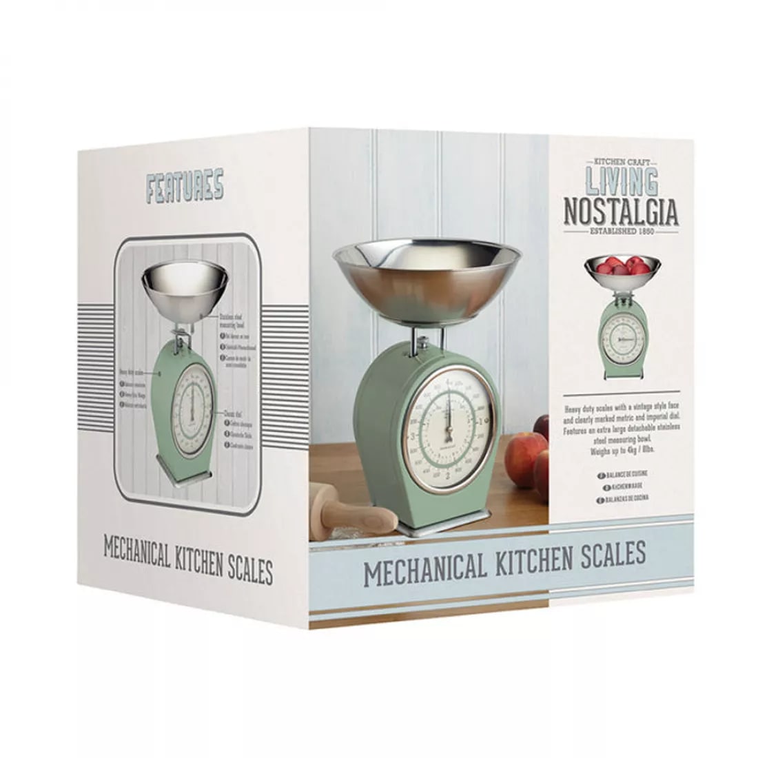 Домашние механические весы из коллекции Living Nostalgia отлично выполняют свою главную задачу - измерение веса. Циферблат простой и понятный, с делением 20 г. Взвешиваемые продукты не должны быть тяжелее 4 кг. Благодаря эмалированному цветному корпусу в винтажном стиле и отделке в виде матового серебра, такие весы добавляют элегантный штрих в вашу кухню.