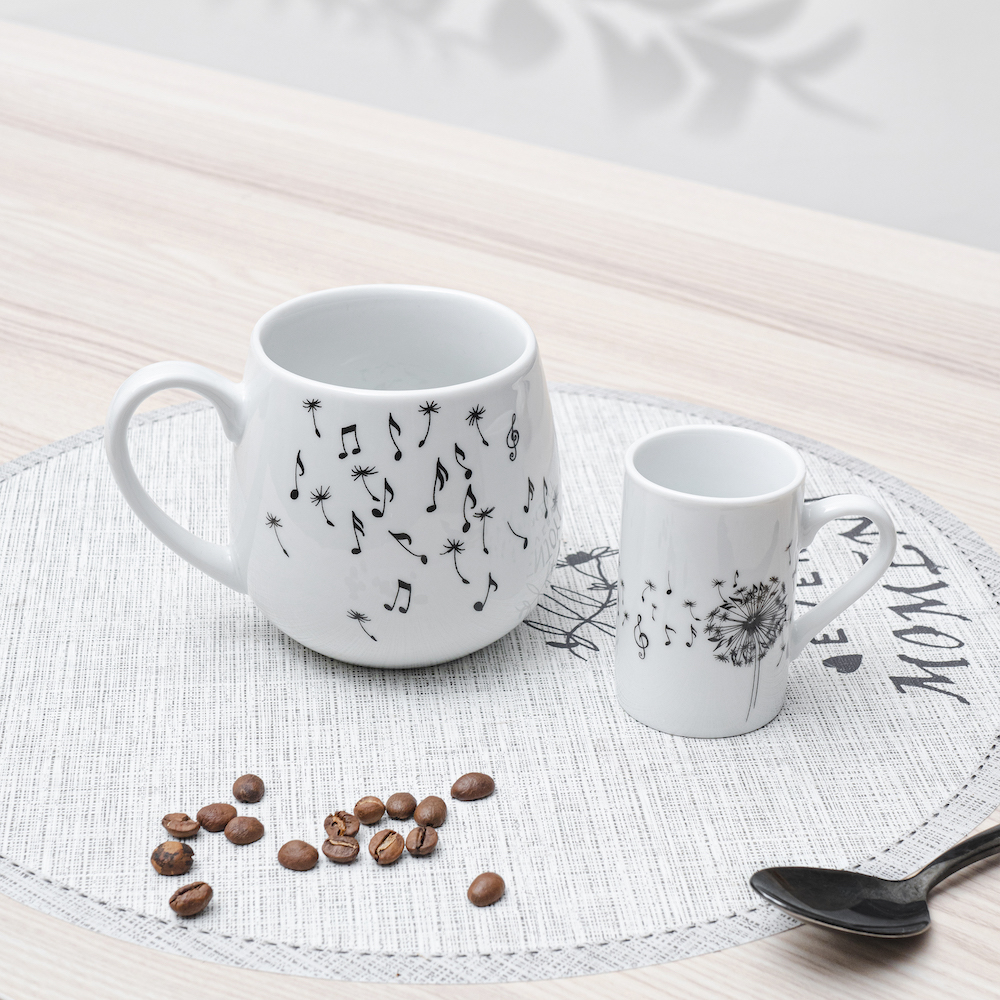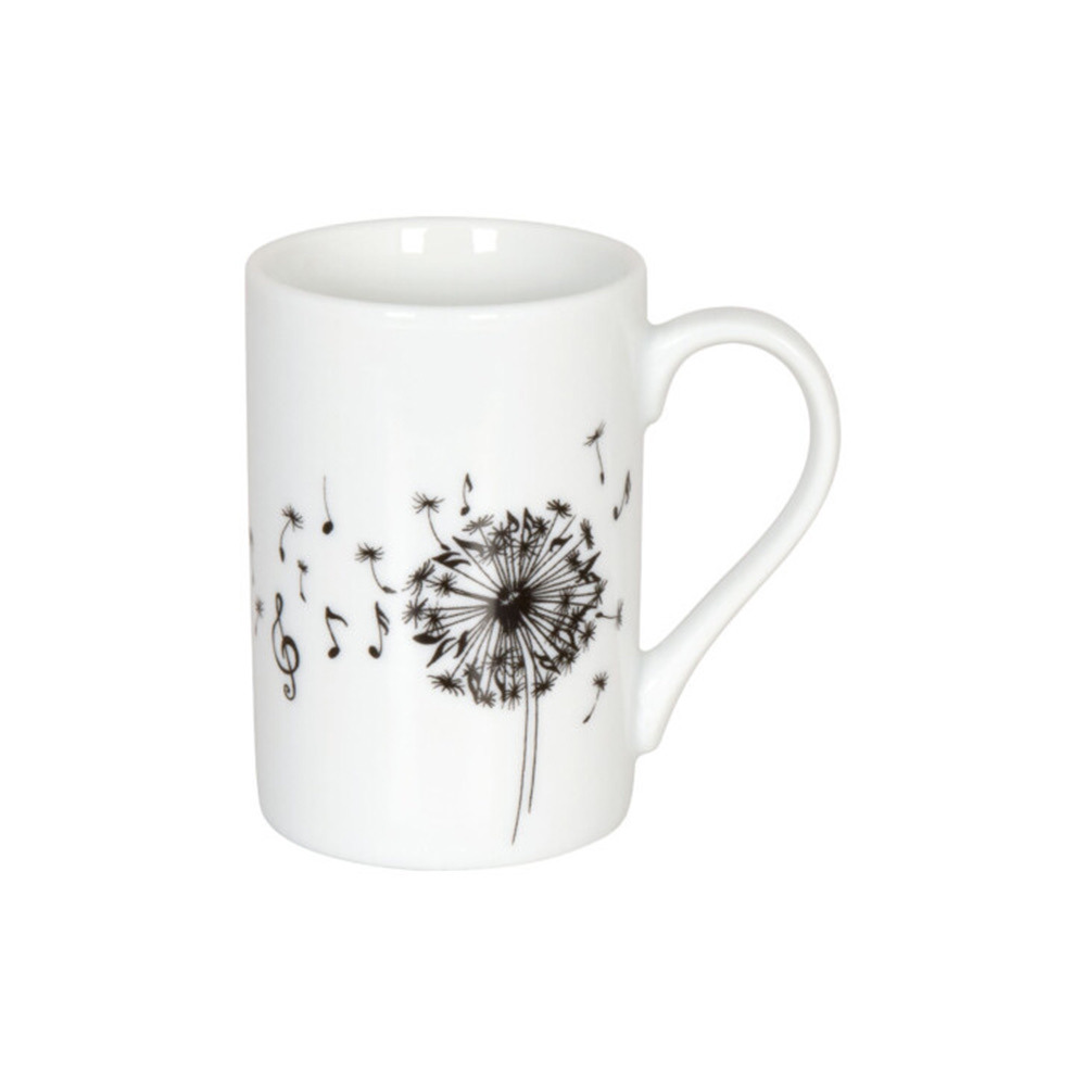 Наслаждайтесь Вашим любимым кофе с этой изящной фарфоровой кружкой для эспрессо от Koenitz. Высококачественный фарфор сохранит напиток горячим, а стильный дизайн с изображением одуванчика и нот сделает кружку полноценным предметом интерьера на Вашей кухне или в офисе.