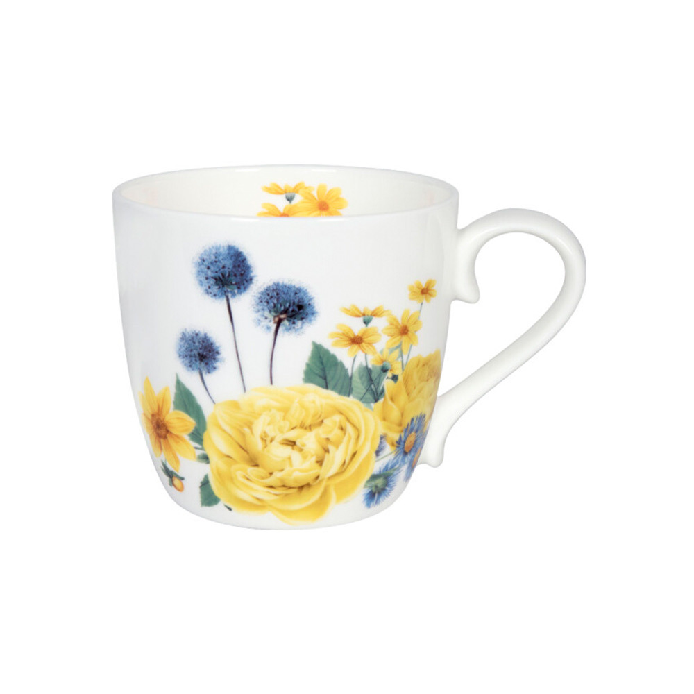 Кружка из костяного фарфора от Koenitz с изображением желтых цветов, напоминающих солнечные лучи в теплый летний день. Яркие лепестки будут радовать Вас каждое утро, пока Вы пьете любимый чай или кофе, даже если за окном идет дождь.