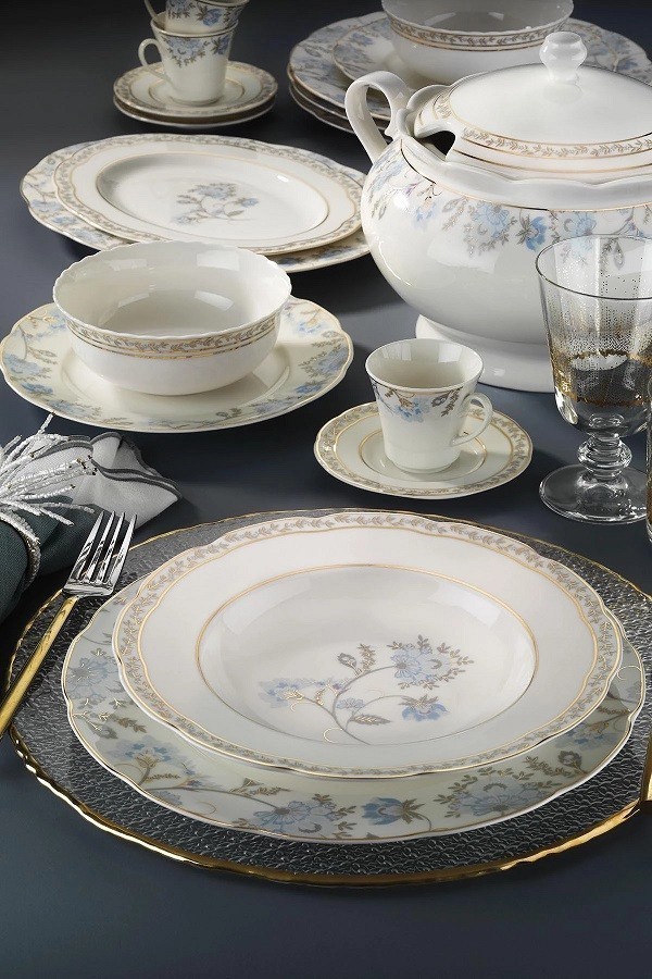 12 больших тарелок 12 глубоких тарелок 12 десертных тарелок 12 пиал 6 овальных блюд 6 кофейных чашек 6 блюдец супница крышка для супницы