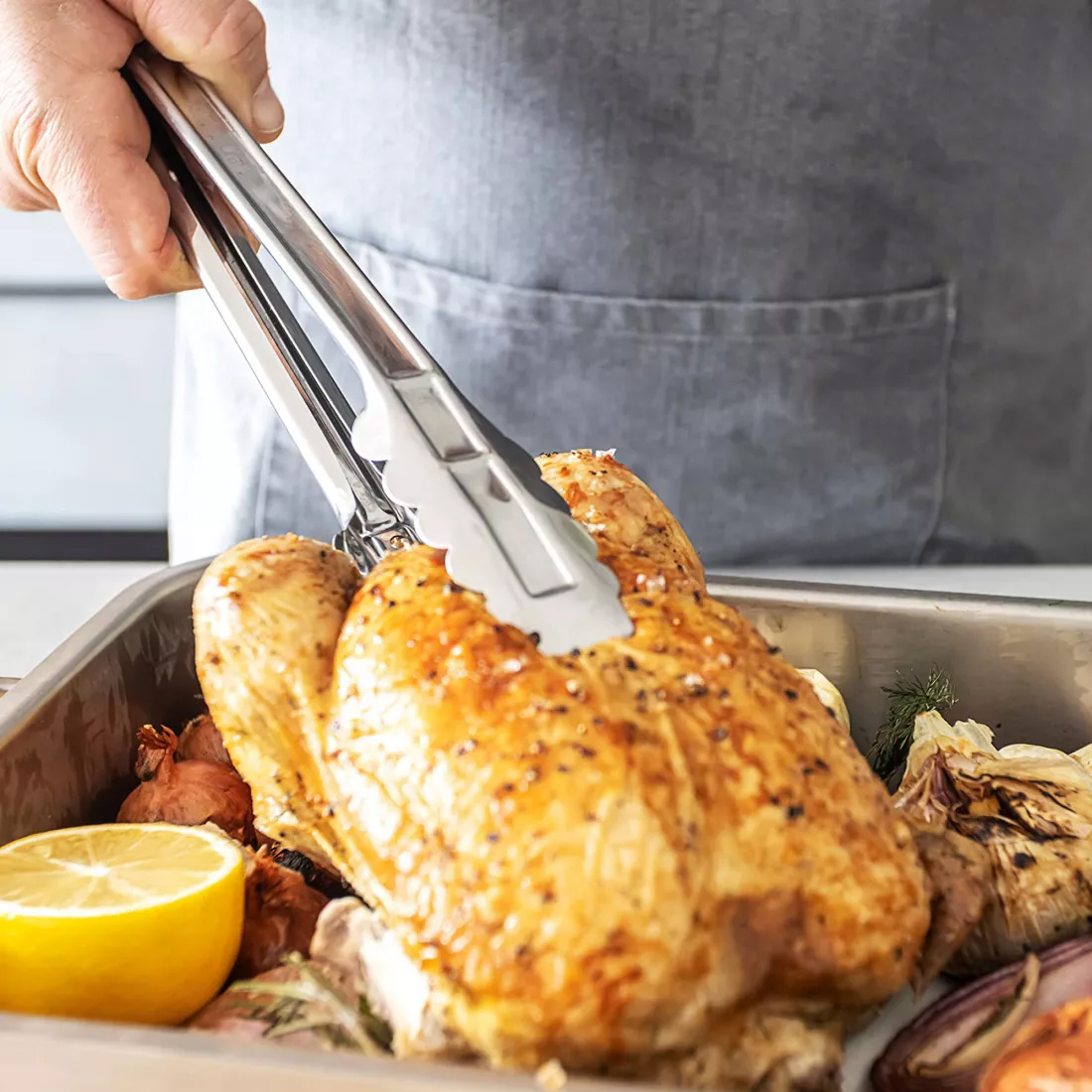 Забудьте о причудах, хитроумных приспособлениях и бесполезных функциях. Это мощные кухонные щипцы, о которых вам говорила мама. Они идеально подходят для захвата, переворачивания и подачи блюд, поскольку изготовлены из прочной нержавеющей стали. Компания KitchenCraft разработала эти щипцы так, чтобы они были безопасными, прочными и удобными в использовании. Они оснащены большими накладками, которые очень эффективно захватывают пищу, и имеют плавный механизм, благодаря которому они кажутся продолжением ваших рук. Очень скоро вы научитесь брать и подавать блюда как профессионал, независимо от того, достаете ли вы их из духовки, переворачиваете бургеры на гриле или стоите у барбекю. Можно мыть в посудомоечной машине