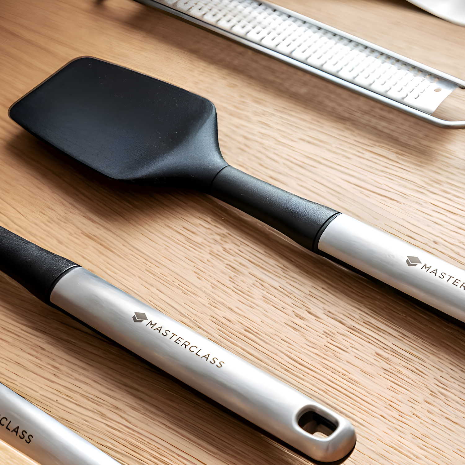 Эргономичная ручка-лопатка Soft Grip из нержавеющей стали с мягкой накладкой, разработанная для минимизации длительного трения и напряжения мышц, имеет форму ложки-шпателя из нержавеющей стали Soft Grip, которая удобно ложится в руку и обеспечивает дополнительный захват. Гибкая силиконовая головка устойчива к появлению запахов, пятен и нагреву при температуре до 232 °C, что означает, что она не плавится, а усиленная сердцевина обеспечивает долговечность. Подходит для использования в аэрогриле. Можно мыть в посудомоечной машине