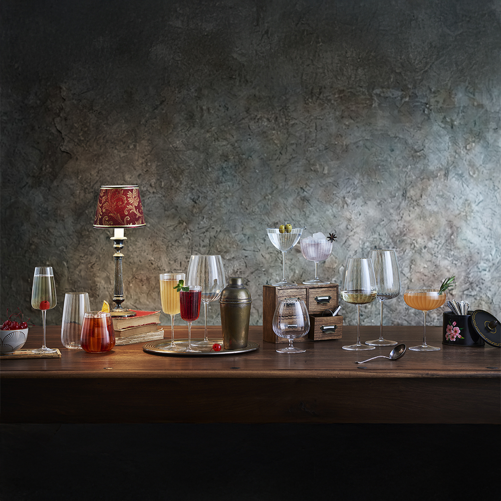 Бокал для красного вина, созданный для того, чтобы подчеркнуть многогранность красных вин, имеет широкую чашу, тщательно продуманную форму, которая способствует аэрации и позволяет раскрыть самые насыщенные и структурированные ноты. Его изысканный вытянутый дизайн напоминает об элегантности подпольных баров эпохи сухого закона. Высокотехнологичное выдувное хрустальное стекло. Ударопрочное, можно мыть в посудомоечной машине.