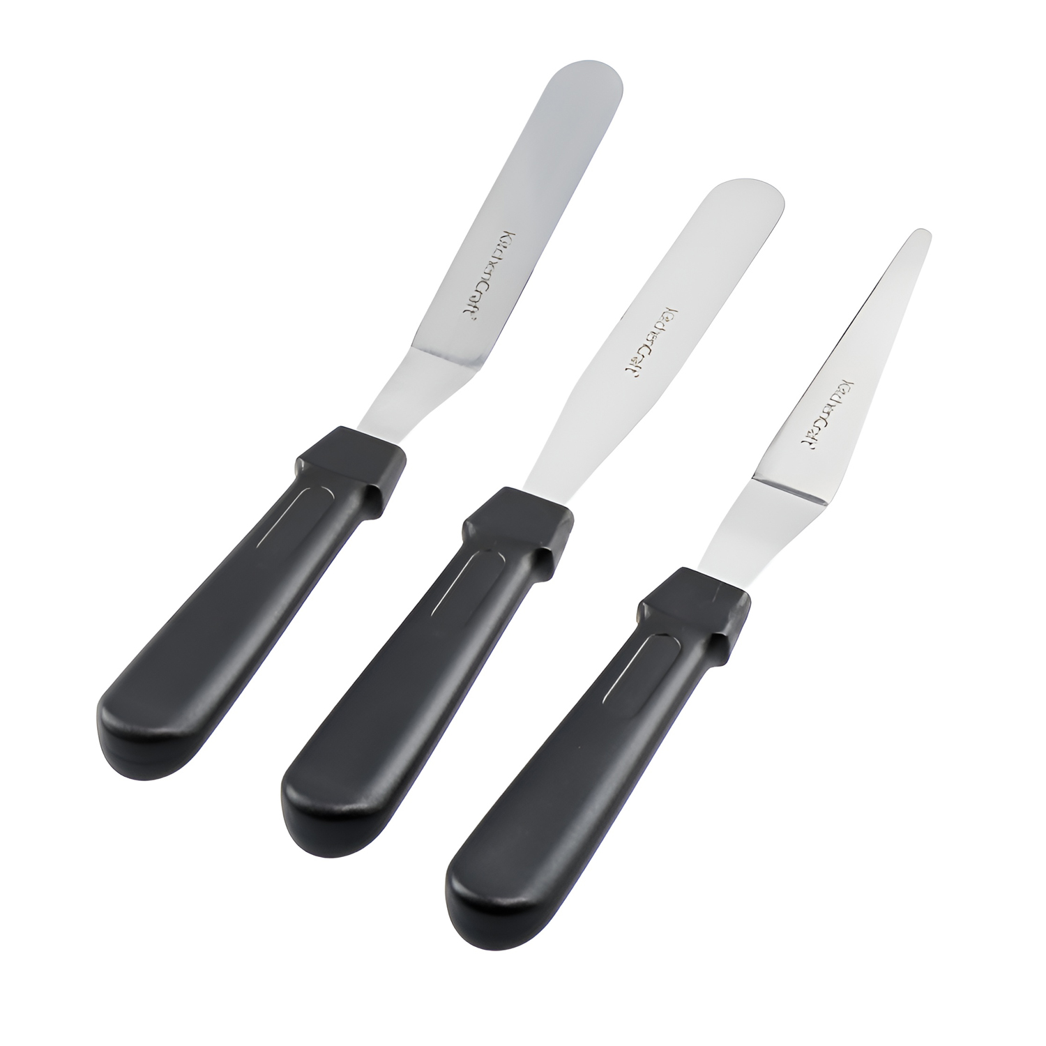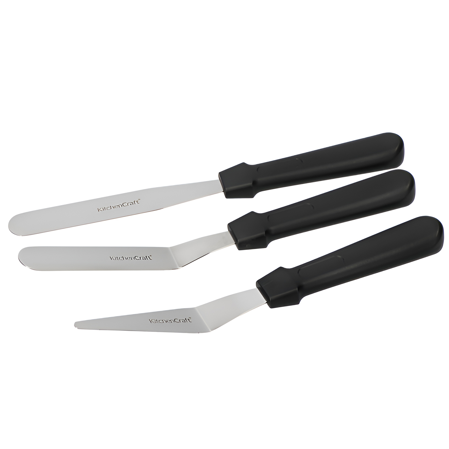 Как показано по телевизору! С набором из трех мастихинов KitchenCraft, вы сможете выполнять тысячи работ по выпечке и декорированию. Набор состоит из трех небольших мастихинов с изогнутыми, заостренными и прямыми лезвиями. Благодаря своим миниатюрным размерам они идеально подходят для выполнения точных работ, таких как нанесение глазури на кексы или печенье, а также для намазывания глазури на торты, наполнения мешочков для глазури, разрыхления тортов в формочках и многого другого. Можно мыть в посудомоечной машине