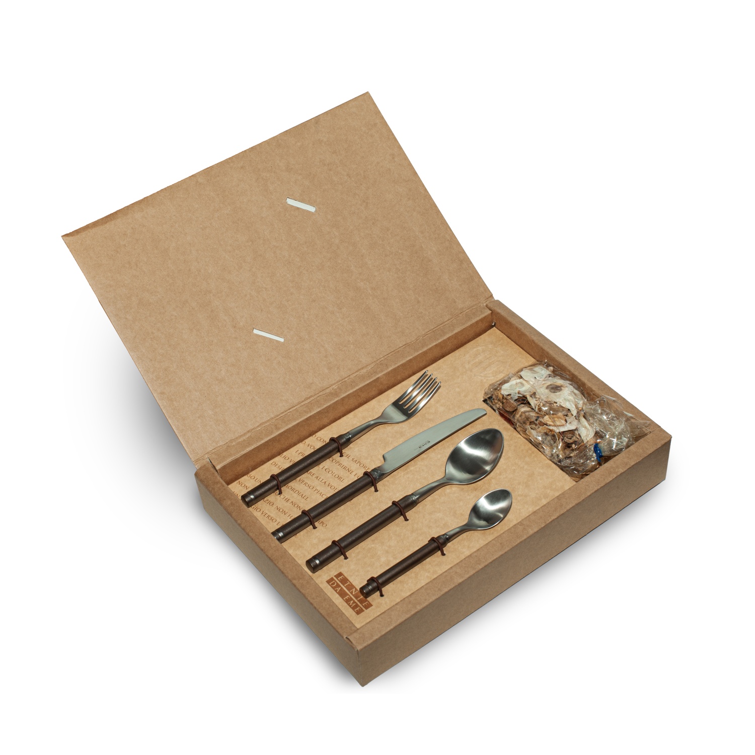 Fuoco - это коллекция кованых столовых приборов из нержавеющей стали 18/10 с сатиновым покрытием. Сатинировка столовых приборов - это процесс, который позволяет добиться очень элегантного и изысканного матового эффекта. Это завершающая обработка, которая достигается с помощью специальных вращающихся щеток. Столовые приборы EME серии "Огонь" - это воплощение качества и энергии. Коллекция в стиле лофт, представленная в современном ключе, с оригинальным дизайном и продуманной отделкой деталей никого не оставит раннодушным. Отличительной чертой, которая делает эту коллекцию узнаваемой, является соединение ручек и столовых приборов, выполненное вручную опытными мастерами. Соединение, специально оставленное открытым, чтобы подчеркнуть высокое мастерство изготовления, делает каждое изделие уникальным.