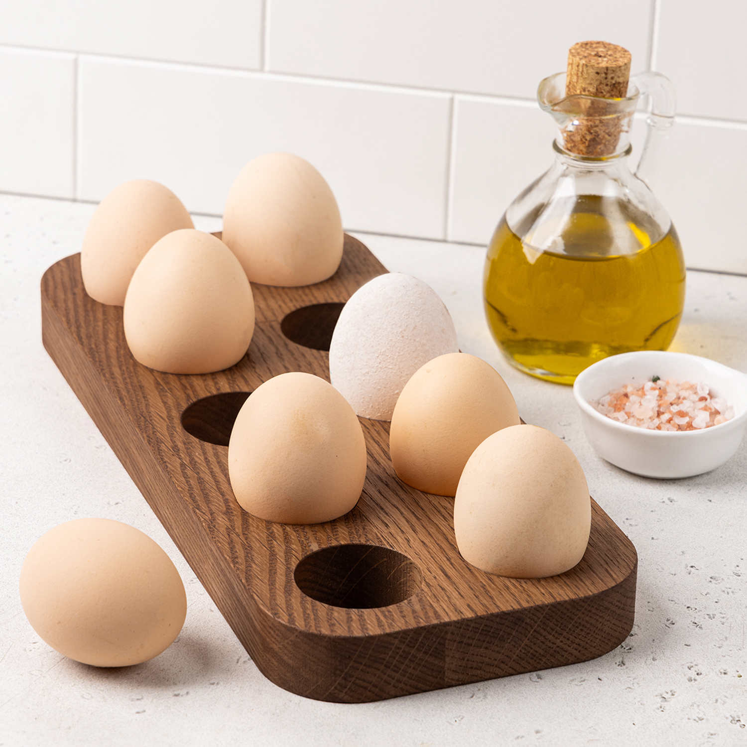 Искусство сервировки и функциональность в каждой детали! Изготовленная из высококачественного светлого дуба, подставка на 10 яиц не просто аксессуар, а настоящая находка для ценителей красоты и удобства. Лаконичный дизайн и строгие формы подчеркивают элегантность и сдержанность. Она идеально впишется как в классический, так и в современный интерьер, добавляя нотку изысканности в каждую сервировку. Подставка Uneca под 10 яиц послужит надежным помощником при приготовлении различных блюд и выпечки. Идеально для Пасхи, её можно использовать как для семейного праздника, так и для уютного  завтрака. Благородная древесина дуба отличается уникальной текстурой и цветом, повышенной влагостойкостью, не впитывает запахи и обладает антисептическими свойствами. Все изделия Uneca покрыты пищевым маслом и безопасны для использования.
