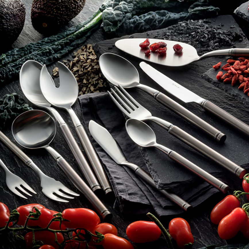 Fuoco - это коллекция кованых столовых приборов из нержавеющей стали 18/10 с сатиновым покрытием. Сатинировка столовых приборов - это процесс, который позволяет добиться очень элегантного и изысканного матового эффекта. Это завершающая обработка, которая достигается с помощью специальных вращающихся щеток. Столовые приборы EME серии "Огонь" - это воплощение качества и энергии. Коллекция в стиле лофт, представленная в современном ключе, с оригинальным дизайном и продуманной отделкой деталей никого не оставит раннодушным. Отличительной чертой, которая делает эту коллекцию узнаваемой, является соединение ручек и столовых приборов, выполненное вручную опытными мастерами. Соединение, специально оставленное открытым, чтобы подчеркнуть высокое мастерство изготовления, делает каждое изделие уникальным. Ручки из полированной стали приобретают этот цвет после обработки в специальных высокотемпературных печах, а верхняя часть изготовлена из кованой стали с матовым покрытием.
