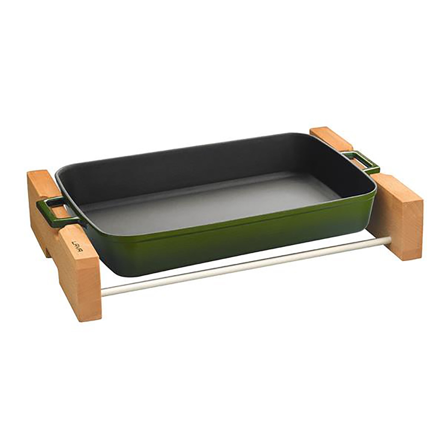 ПРЯМОУГОЛЬНОЕ БЛЮДО 26Х40СМ. И ДЕРЕВЯННАЯ ПОДСТАВКА ДЛЯ СЕРВИРОВКИ ЗЕЛЕНОГО ЦВЕТА