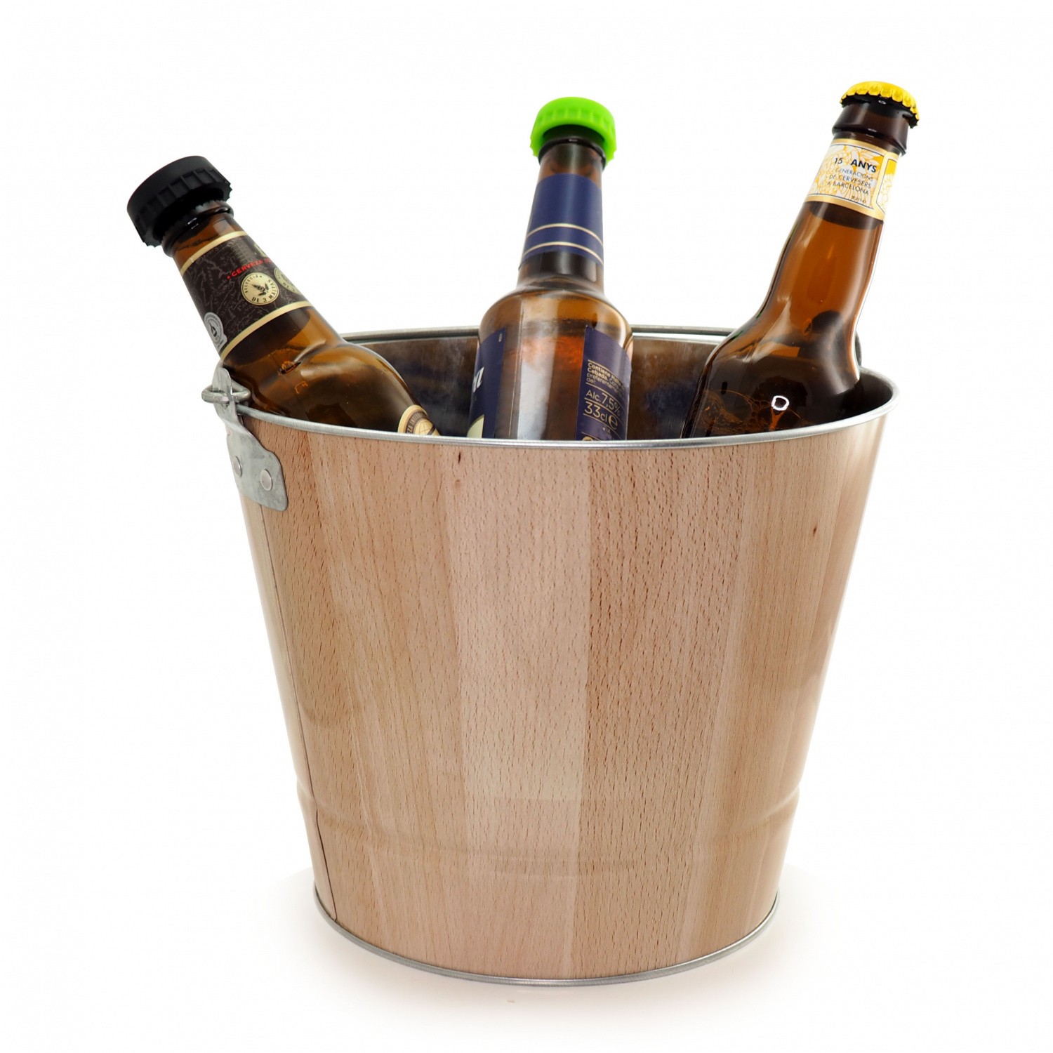 Металлическое ведерко для льда, легкое, практичное и стойкое. Его ручка позволяет легко переносить его. Предназначенный для поддержания температуры нескольких бутылок пива, безалкогольных напитков или винных бутылок, он может быть вложен одна в другую и имеет очень качественную отделку. Дизайн от Pulltex