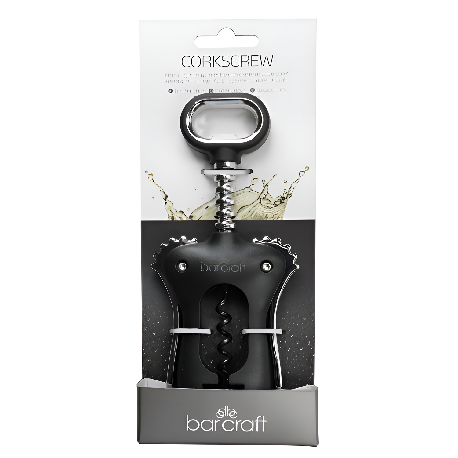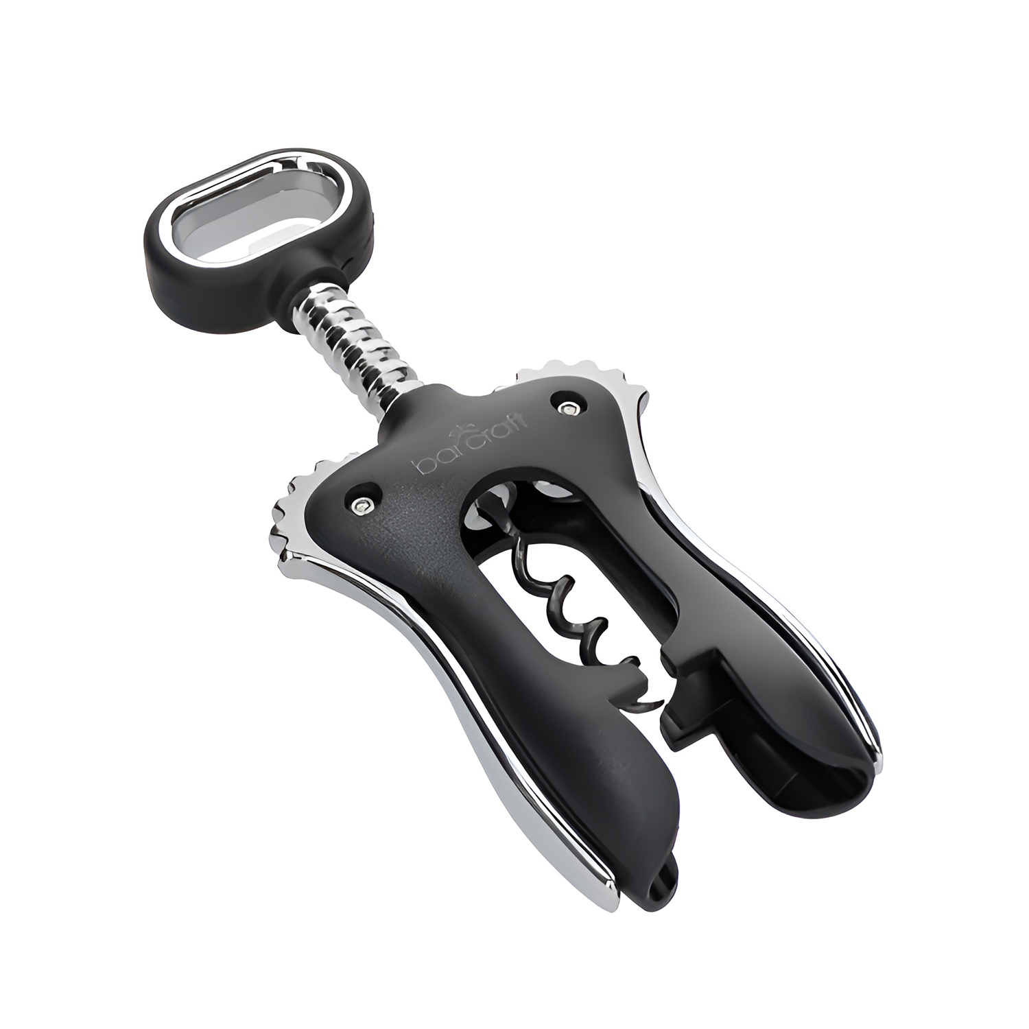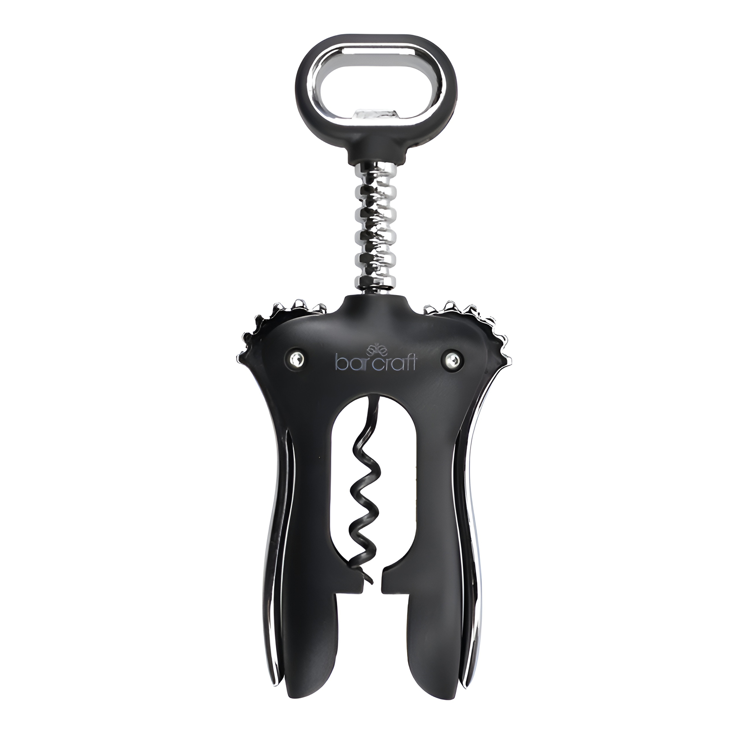 Этот сверхпрочный штопор с крылышками и открывалкой для бутылок от BarCraft плотно прилегает к винным бутылкам и легко удаляет пробки, не раскрошив их. Он изготовлен из прочного цинкового сплава и тщательно продуман таким образом, чтобы сочетать современный дизайн и надежность. Спираль с антипригарным покрытием позволяет легко вынимать пробку, не повреждая ее. Для использования просто надавите штопором на горлышко бутылки, возьмитесь за корпус и начните вращать ручку по часовой стрелке. Затем поверните ручку до тех пор, пока крылышки не встанут вертикально, и обеими руками опустите их вниз. Чтобы вынуть пробку из спирали, сожмите ее и поверните против часовой стрелки.