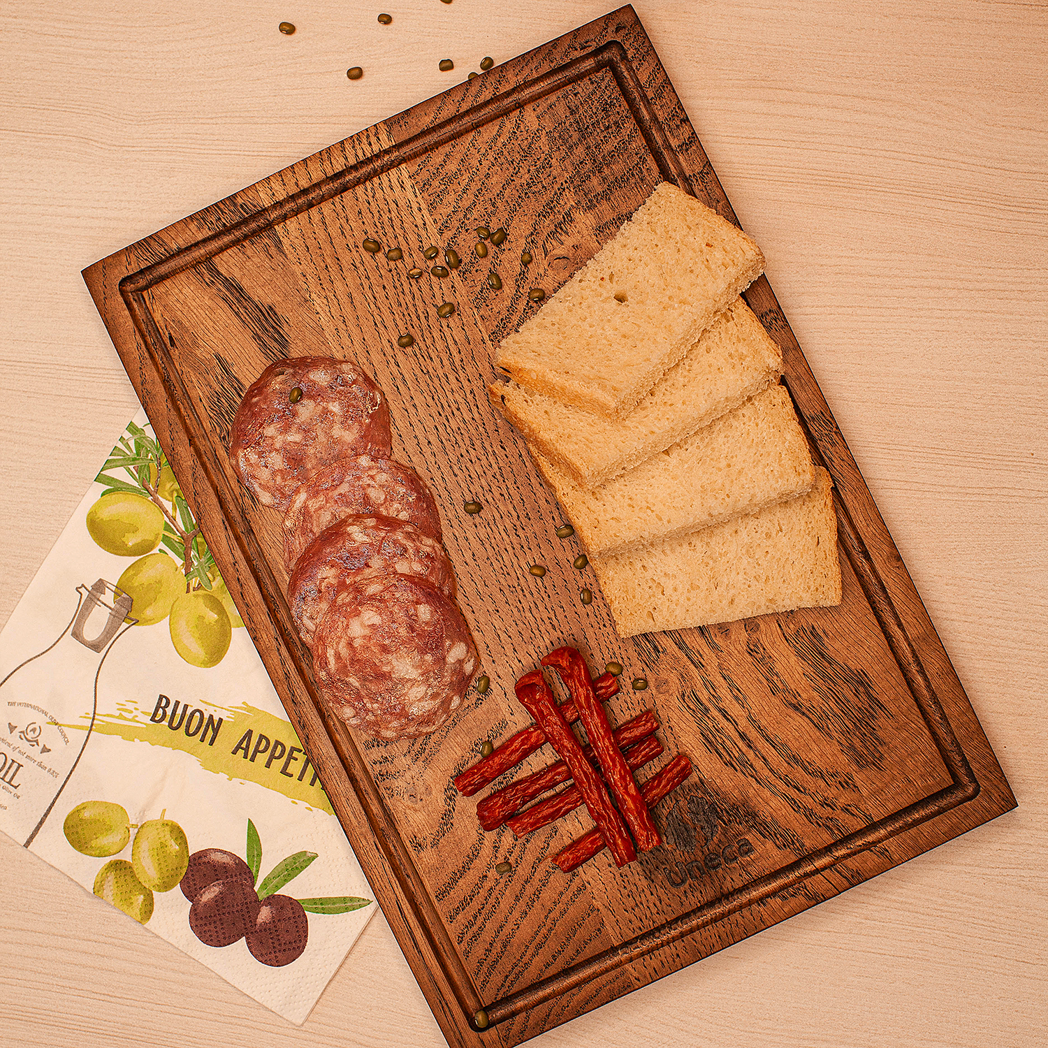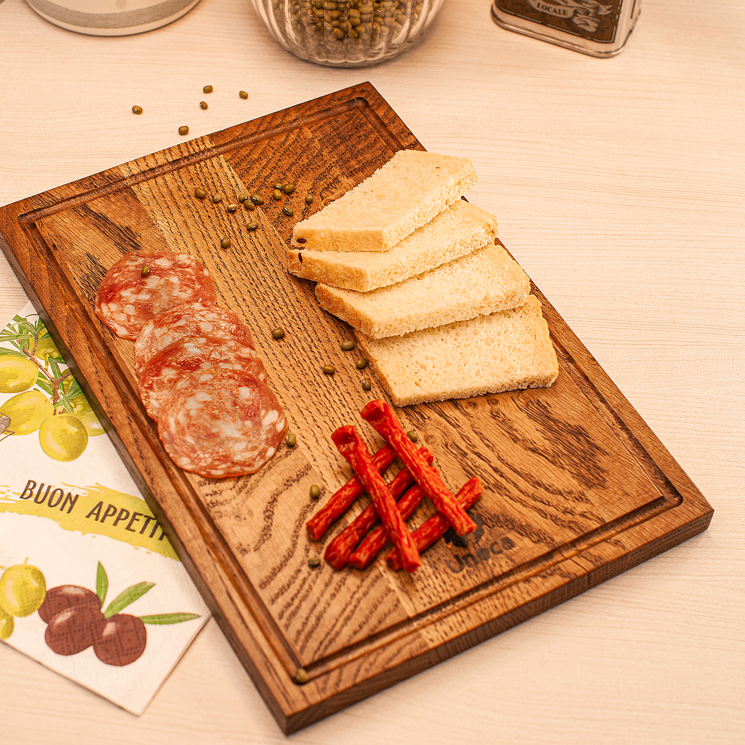Прямоугольная разделочная доска Uneca из дуба позволит вам с комфортом нарезать мясо, рыбу или нашинковать овощи. Благодаря компактным размерам такая доска гармонично впишется в интерьер даже самой небольшой кухни. Благородная древесина дуба отличается уникальной текстурой и цветом, повышенной влагостойкостью, не впитывает запахи и обладает антисептическими свойствами. Все изделия покрыты пищевым маслом и безопасны для использования.
