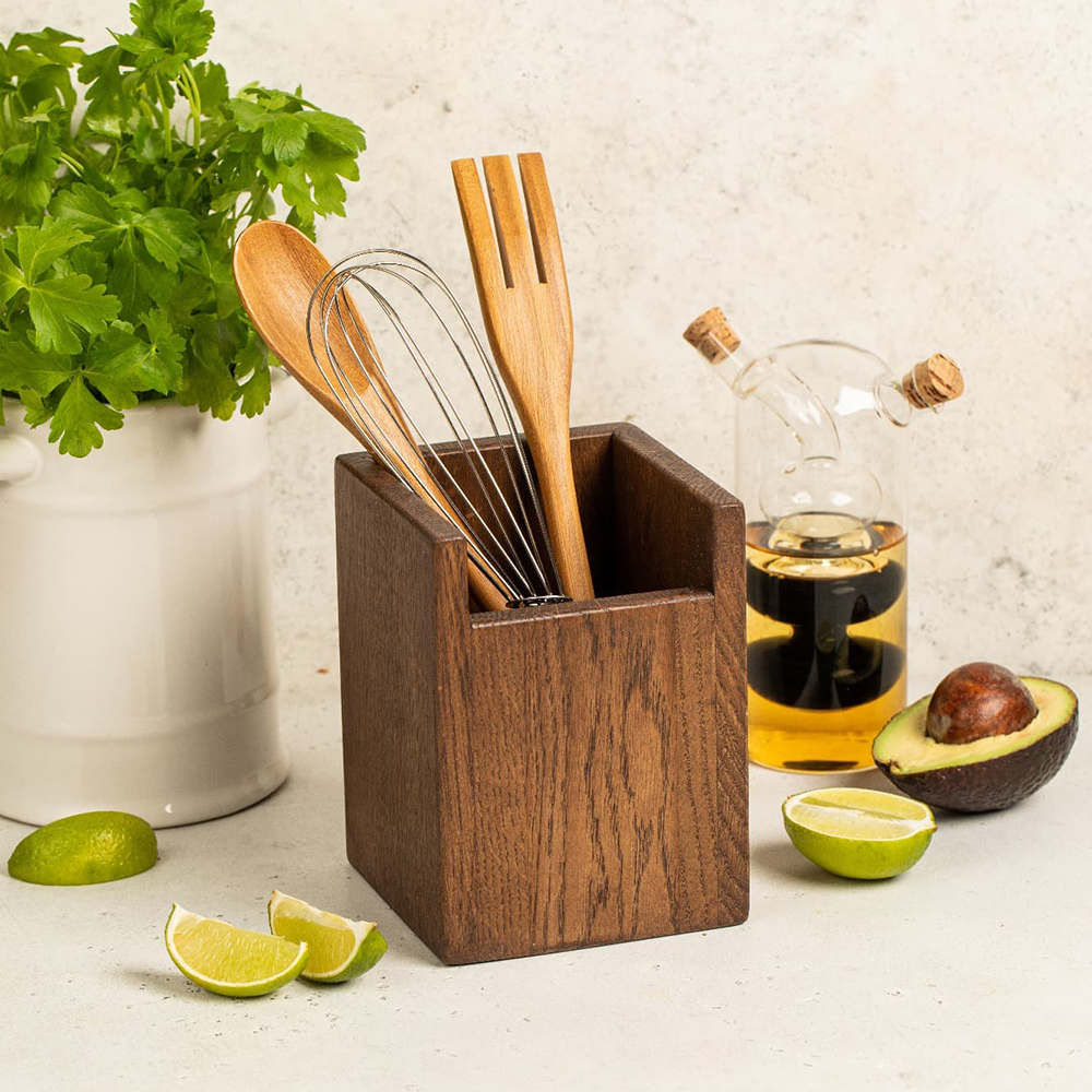 Органайзер для кухонных принадлежностей 11х11х15 см деревянный, дуб