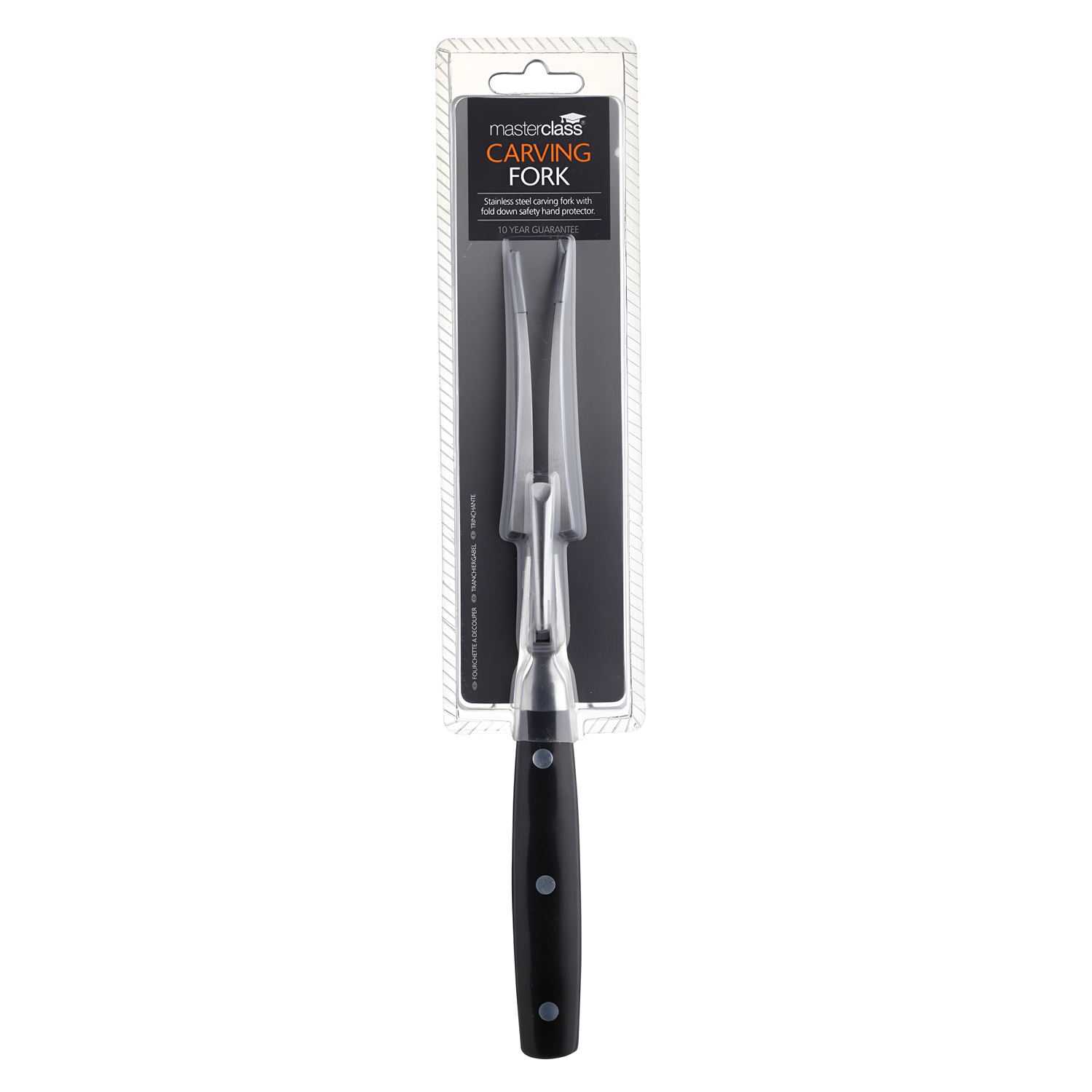 Легко и безопасно разделывайте запеченную птицу и мясо на порции. С помощью этой разделочной вилки из нержавеющей стали вы сможете надежно удерживать блюдо во время нарезки, а выдвижной защитный кожух надежно защитит ваши руки. Эта разделочная вилка длиной 28 см, изготовленная из прочнейшей нержавеющей стали, отлично подойдет для подачи воскресного жаркого. Вам не нужно беспокоиться о том, что она заржавеет, испортится или впитает в себя сильные ароматы и запахи. Только ручная мойка